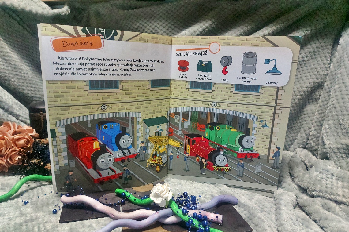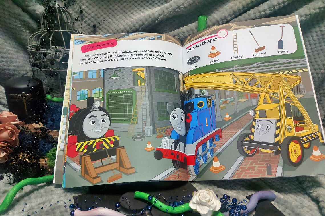 W takim przypadku z pomocą przychodzi seria książeczek szukaj i znajdź, w której możemy odnaleźć dobrze nam znane postaci z bajek telewizyjnych i tych książkowych. Nasz wybór padł na Lokomotywy na tropie i kolejną już przygodę w towarzystwie zabawnego, niebieskiego parowozu. Tomek i przyjaciele gości w naszej biblioteczce w różnych wydaniach. Dzięki temu dzieci z większym zainteresowaniem podchodzą do przeróżnych zadań. Nie inaczej było tym razem.
