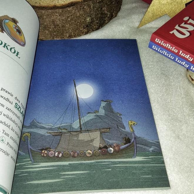 W tej serii jest jeszcze coś, co należy do ważnych części każdej z książek. Chodzi mi oczywiście o ciekawostki historyczne ukryte w treści. Podczas czytania napotykaliśmy podkreślone słowa, a na końcu każdego rozdziału znajduje się kilka słów o danej ciekawostce na temat wikingów. Dzięki temu dowiedzieliśmy się, między innymi, kim jest jarl, co to walhalla, jak przebiega edukacja i na czym polega Ting. Fajnym ułatwieniem jest umieszczenie legendy, która składa się z opisów znaczków, które mówią, że poczytamy o sztuce, gospodarstwie, wojsku, kulturze oraz społeczeństwie Wikingów.