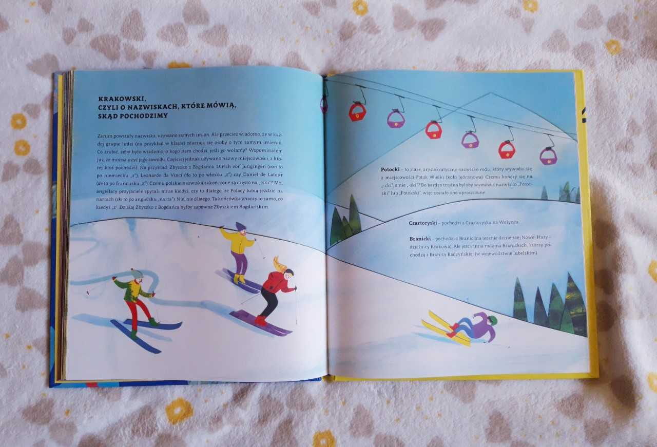 Podczas lektury dzieci mogą przekonać się, że część nazwisk została utworzona od przezwisk (np. Banach i Banaszek pochodzą prawdopodobnie od określenia grubego lub niegrzecznego dziecka), nazw przedmiotów (Sagan, Korczak), części ciała (Noga, Liczko) czy zwierząt (Królikowski, Woźniak czy Sroczyński). Interesującym rozdziałem był ten poświęcony nazwiskom złożonym – możecie z niego poznać pochodzenie takich nazwisk jak Mrzygłów, Palimąka, Pędzimąż czy Kręcichwost.