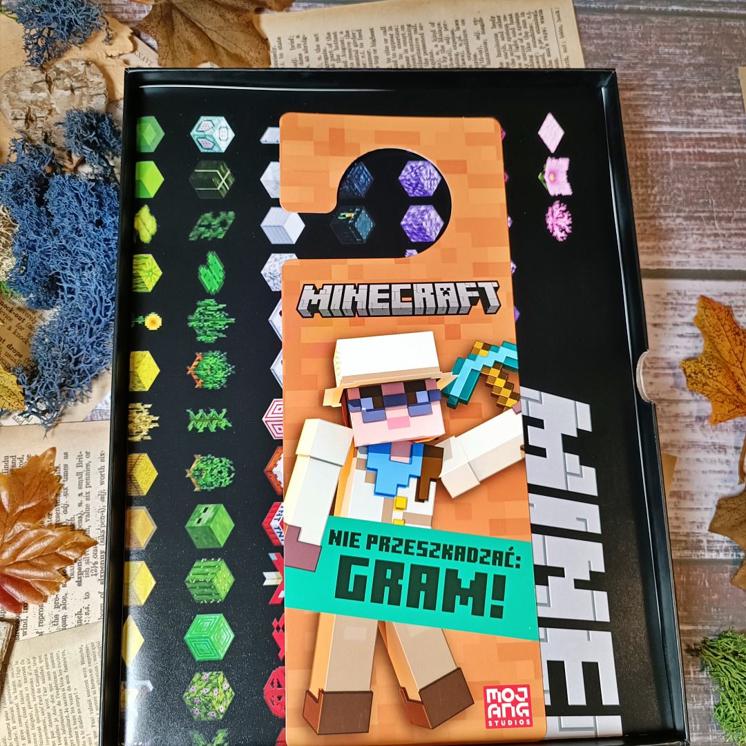 Nie można również zapomnieć o pozostałych elementach kolekcji tj. Mini blokopedii, która wprowadzi nas w świat przepięknych i wielokolorowych bloków ozdobnych. Każdy element działa na wyobraźnie, wspomaga siłę kreacji. Poza książkami ozdobne pudełko zawiera również gratki dla fanów tego uniwersum, a mianowicie plakat z blokami, jakie możecie spotkać w grze oraz zawieszkę na drzwi, która informuje intruzów o rozgrywce lub przyjaciół o imprezie. Całość cieszy oko i genialnie komponuje się na półce.