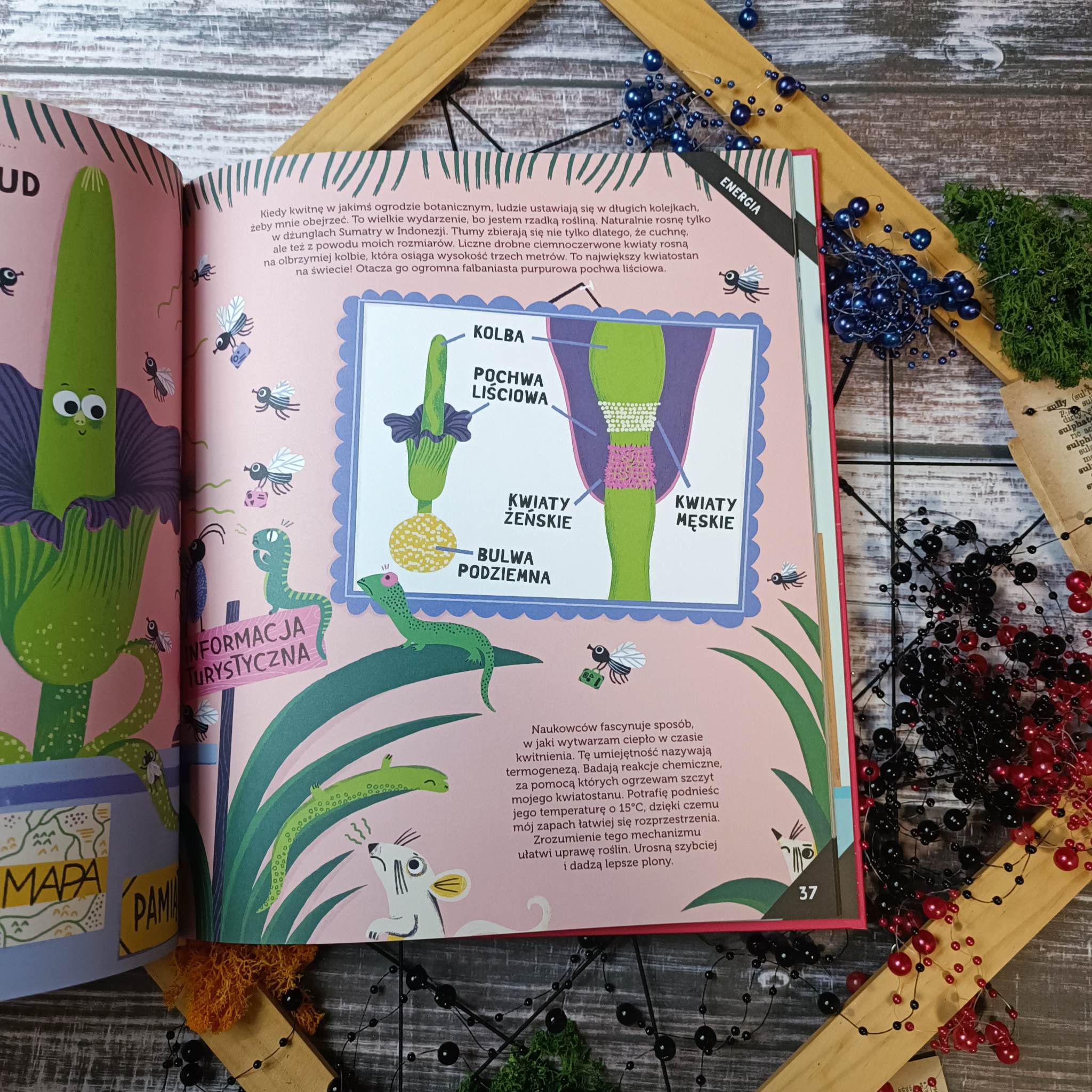 Wynalazki roślin zachwyciły nas formą i treścią. Dzieci godzinami przeglądały ilustracje, ja również łapałam się na tym, że wpatruje się w kreskę i tworzone przez nią obrazy nieco dłużej. Równie mocno wciąga sama warstwa tekstowa. Pełno tu ciekawostek i zaskakujących faktów, które uzupełnią naszą wiedzę o roślinach i ich mocy. Choć sporo w niej inspiracji światem roślin, to wciąż daje nadzieje, że i na nasze pociechy czeka jakaś ich cecha do odkrycia. Czyż to nie najważniejsza sprawa, by nasze dzieci zachęcać do odkrywania tego, co wciąż ukrywa się przed ludzkim okiem. Jedno jest pewne, rośliny nadal mają w sobie tajemnice, ale chętnie uchylą nam ich rąbka.