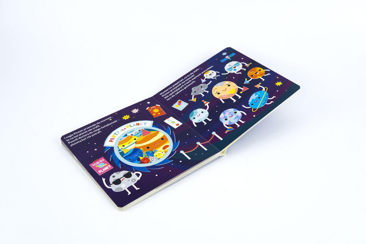 Układ słoneczny, jak i cały kosmos, od lat wiedzie prym wśród małych ciekawskich. Jest coś w tej nieograniczonej przestrzeni, co fascynuje dzieci. Widać to po popularności wszelakich programów naukowych skierowanych do najmłodszych czy chwytliwych piosenkach o kosmosie, które wpadają w ucho, a zarazem dostarczają wiele ciekawych informacji. „Kochamy Plutona” to piękna opowieść, idealna dla małych czytelników. Tekst jest melodyjny, wierszowany, dzięki czemu wpada w ucho i przyjemnie się go słucha. Autorzy w bardzo interesujący sposób, przemycili ogrom ciekawostek. Czego dowiedzą się dzieci z lektury tej książeczki? Poznają trzy zasady, które muszą spełniać ciała niebieskie, aby klasyfikować się do planet. Dodatkowo, maluchy dowiedzą się, dlaczego Pluton nie zalicza się do tego grona oraz jakie inne planetoidy można spotkać w przestrzeni kosmicznej, jak np. asteroidy. Na tym jednak nie kończy się atrakcyjność tej książeczki.
