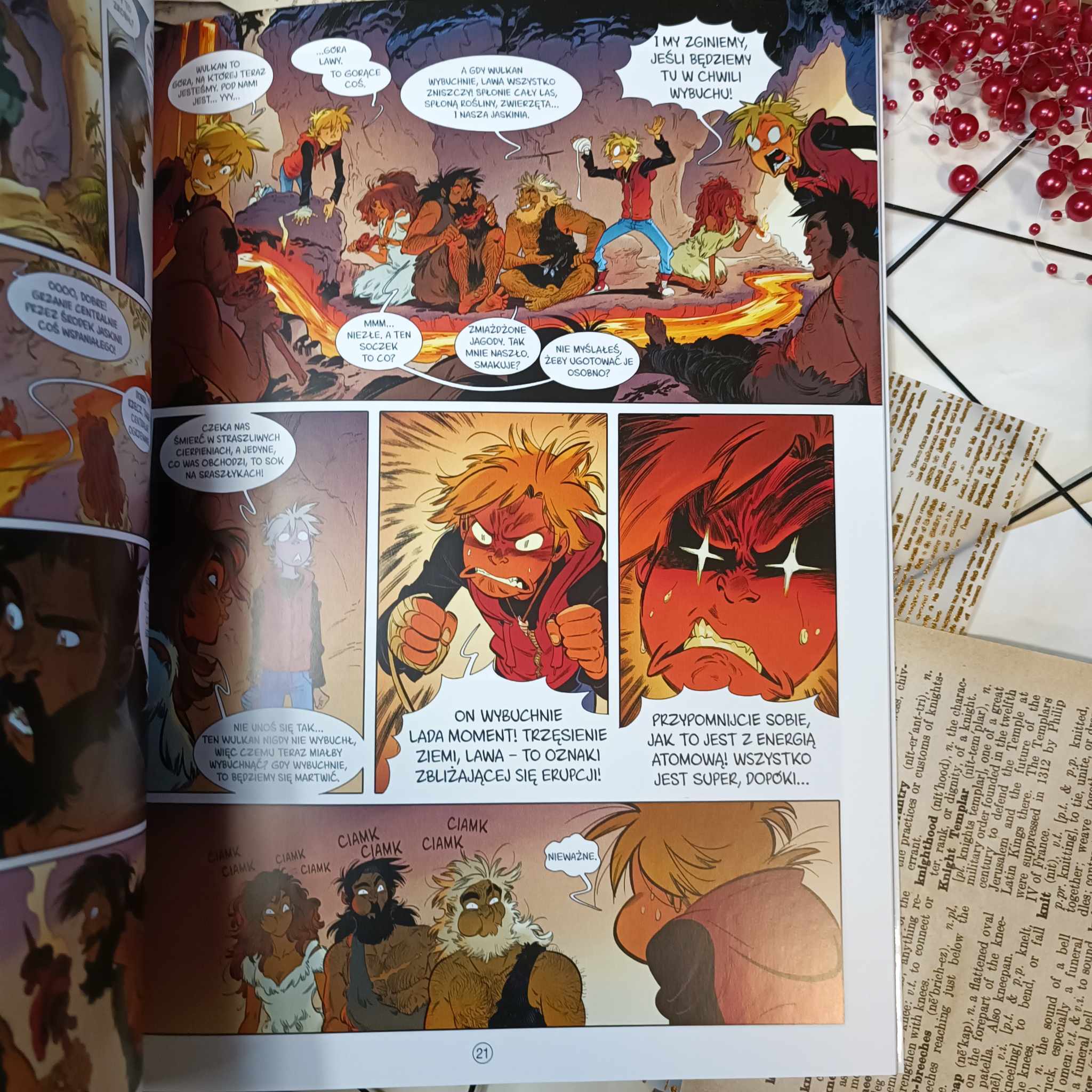 Z każdą odsłoną tej historii odkrywamy coraz więcej ciekawych detali skrywających się zarówno w historii, jak i na ilustracjach. Chłopiec, który próbuje odkryć, skąd pochodzi, trafia w obce mu miejsce i nie traci rezonu, a stara się przetrwać. Próby ucywilizowania zgrai neandertalczyków bywają zabawne, ale niosą ze sobą dużo ukrytego przekazu. Frnck pokazuje im świat swoimi oczami, a oni nie zawsze chcą uczyć się wszystkiego, co dzieciak chce przedstawić. Tylko jedna osoba zdaje się słuchać go z zainteresowaniem. Oj tak, robi się coraz ciekawiej i to nie tylko za sprawą wybuchającego wulkanu. Nie możemy doczekać się kolejnych przygód tej wesołej nieco nietypowej gromadki.