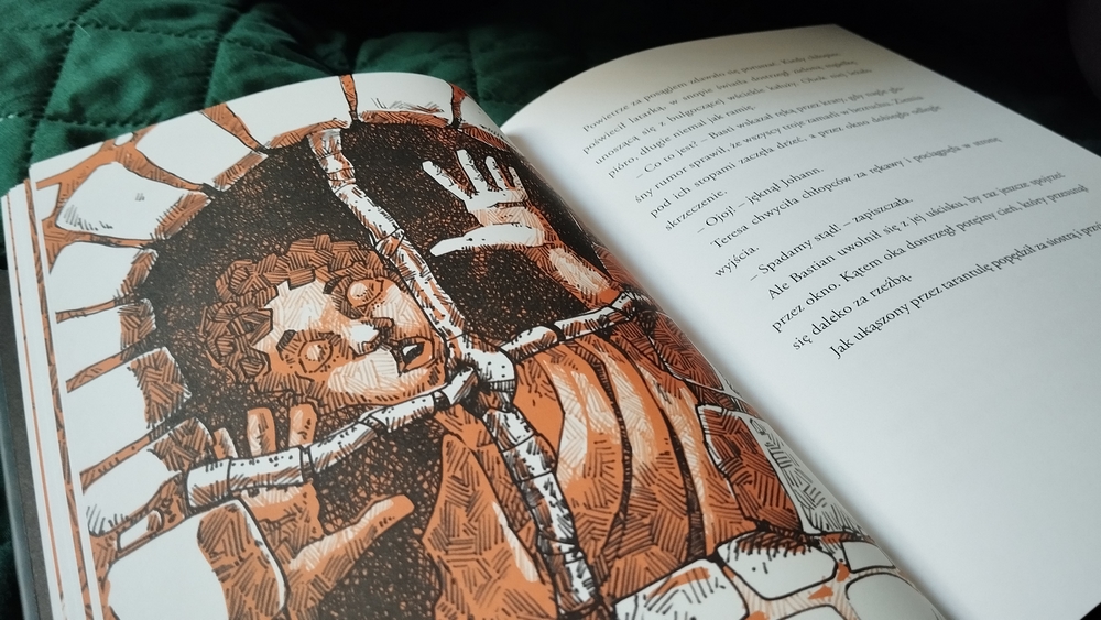 Tę książkę czyta się na jednym wdechu. Naprawdę. Od samego początku akcja wciąga i nie pozwala odłożyć czytania na później. Dobrze, że stron nie jest za dużo i jeszcze treść jest poprzetykana obrazkami, bo czytelnik niechybnie by się udusił z emocji, strachu i braku tlenu. A teraz poważnie. Książka faktycznie jest niepozorna, a napakowana zdarzeniami od pierwszej i ostatniej strony. Ciągle coś się dzieje, nie ma czasu na nudę, wydarzenie goni wydarzenie. Wszystko to dodatkowo zilustrowane tak, że budzi jeszcze większe emocje, choć rysunki są proste, wykorzystują tylko trzy kolory, ale podsycają grozę opowieści.