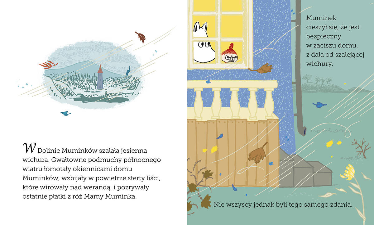 Książeczka „Muminek, Mała Mi i dziki wiatr” to cudowna przygoda dla młodszych czytelników. Historia jest prosta, ale pełna uroku i mądrości. Tych samych, które od zawsze charakteryzują opowieści z Doliny Muminków. I, które, znamy od pokoleń. Ilustracje, oparte na oryginalnych grafikach Tove Jansson, są przepiękne i oddają niepowtarzalny klimat opowieści. Duże litery i przystępny język sprawiają, że książka idealnie nadaje się do wspólnego czytania z dzieckiem (lub później nauki samodzielnego czytania). Jest bardzo fajna! Jednak warto zauważyć, że dla starszych fanów Muminków fabuła jest zbyt prosta. To zdecydowanie pozycja skierowana do młodszych odbiorców. Tych, którzy dopiero zaczynają swoją przygodę z literaturą. Dzieci w wieku szkolnym mogą już śmiało czytać oryginalne opowieści z Doliny Muminków. Doskonale pamiętam, jak bardzo je w tym wieku lubiłam.