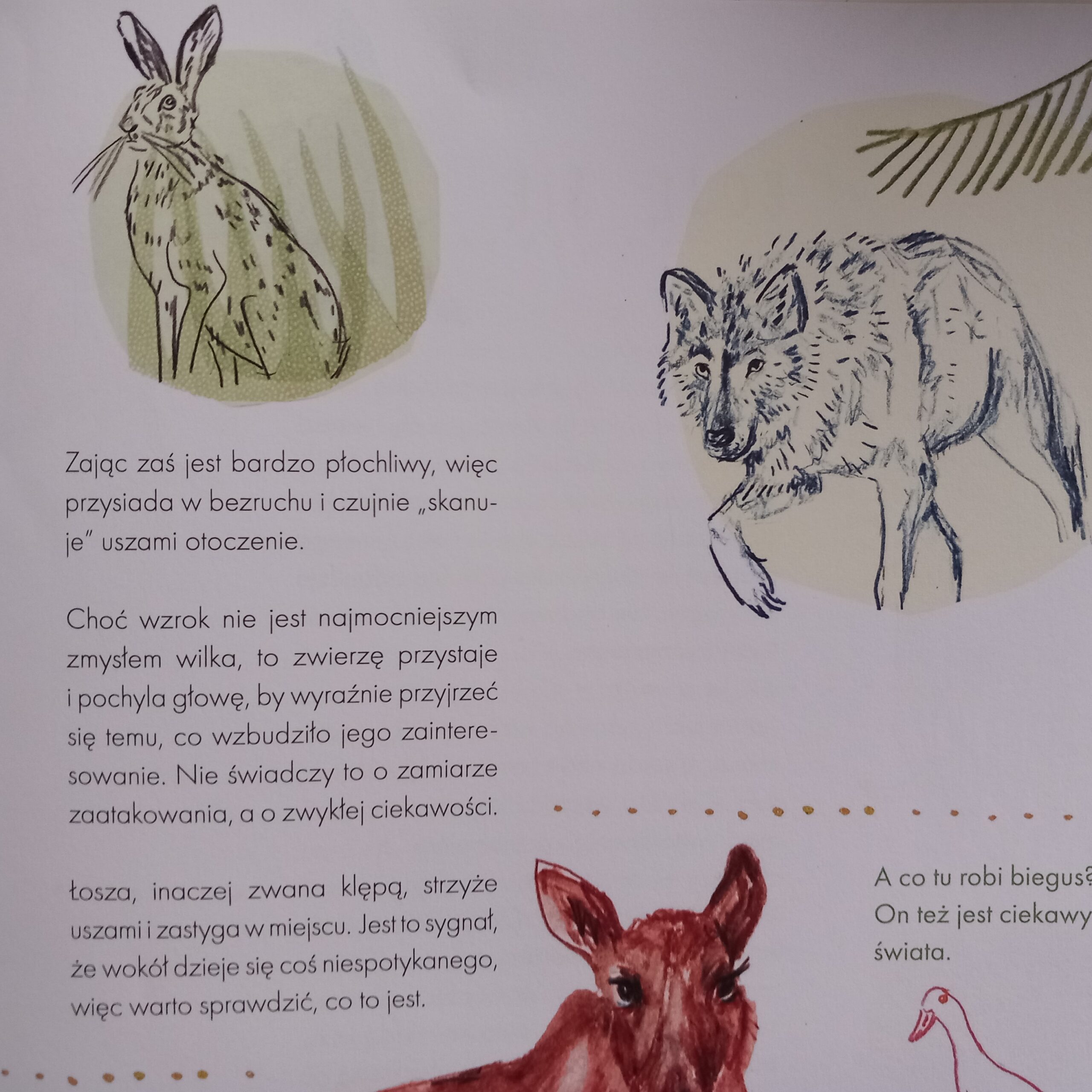 Jak porozumiewają się wilki? O czym najczęściej śpiewają szpaki? Kogo ostrzegają sójki? Po co tańczą żmije? Jak zachować się w razie spotkania oko w oko z dzikiem? Co zrobić, gdy znajdziemy ranne zwierzę? Dlaczego niedźwiedź staje na dwóch łapach? I jak gęsi pomogły ludziom zrozumieć zwierzęta?