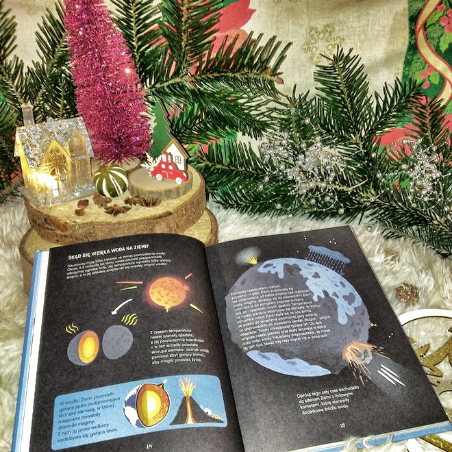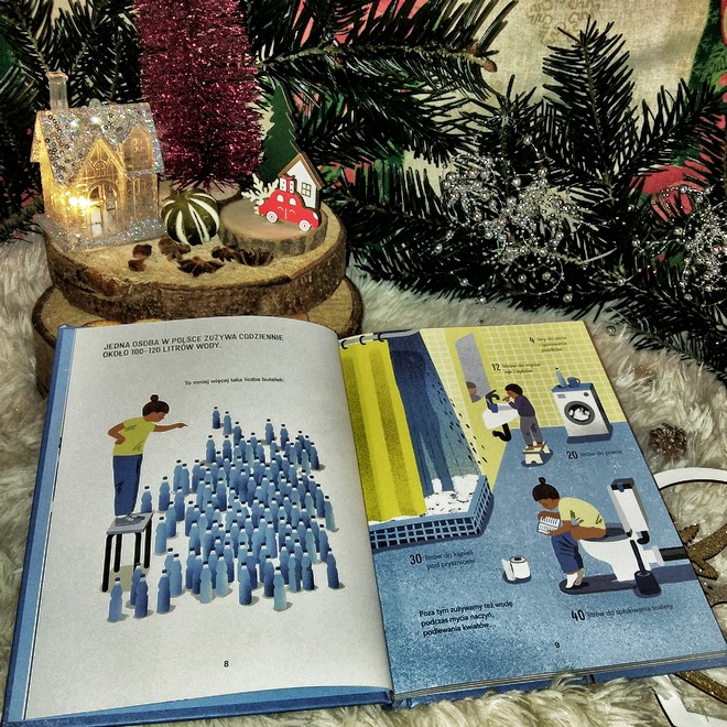 Jestem zazdrosna, że takich książek nie było, jak ja byłam dzieckiem i moja nauka wyglądała na trochę nudniejszą. Nie miałam możliwości zobaczenia wizualnie, ile wody jest w naszym organizmie, ile dziennie jej zużywamy i w czym pomaga nam ta substancja. Christina Steinlein opisuje szczegółowo wszystko, co z wodą związane. Przekazuje nie tylko wiedzę, ale również intrygujące ciekawostki związane z wodą. Opisuje, jak pewne rzeczy funkcjonowały kiedyś, a jak teraz.