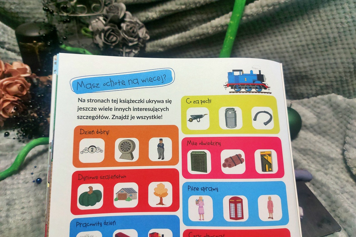 W takim przypadku z pomocą przychodzi seria książeczek szukaj i znajdź, w której możemy odnaleźć dobrze nam znane postaci z bajek telewizyjnych i tych książkowych. Nasz wybór padł na Lokomotywy na tropie i kolejną już przygodę w towarzystwie zabawnego, niebieskiego parowozu. Tomek i przyjaciele gości w naszej biblioteczce w różnych wydaniach. Dzięki temu dzieci z większym zainteresowaniem podchodzą do przeróżnych zadań. Nie inaczej było tym razem.
