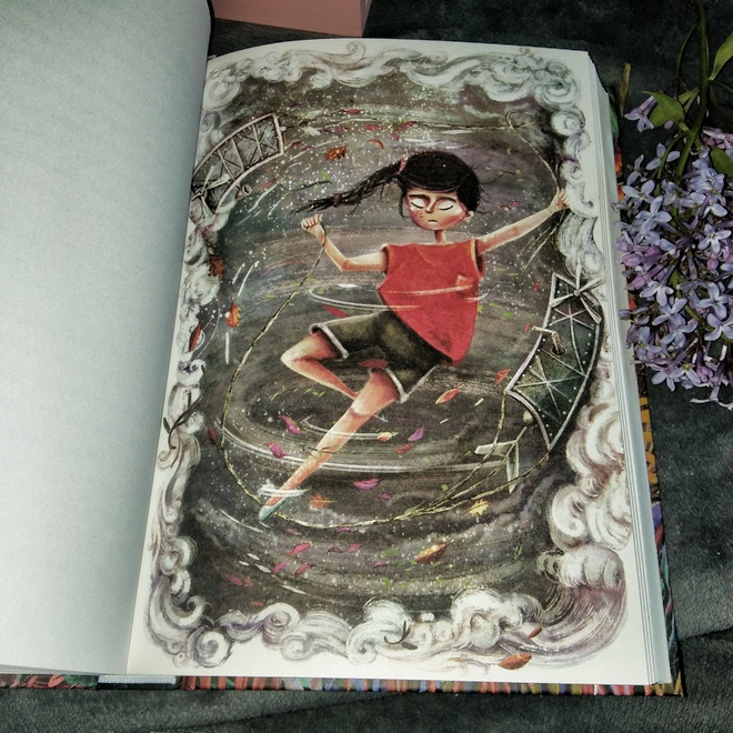 Nie byłabym sobą gdybym na początku nie wspomniała o wydaniu tego cuda. Pieśni Zaginionego Kontynentu zachwycają już samą okładka, a po zajrzeniu jest tylko lepiej. Dawno nie widziałam tak starannie wydanej książki dla dzieci. Twarda i solidna oprawa , cała kolorowa i nawiązująca do treści. Do tego gruby papier (książka ma raptem 248 stron, a wygląda jak prawdziwa cegiełka i tyle też waży), który tak pięknie się prezentuje i gwarantuje długotrwałość. No i nie można zapomnieć o wspaniałej pracy Agnieszki Wajdy. Jej ilustracje, chociaż są tylko na początku każdej pieśni oczarowują. Już w nich można odkryć fragment tego, o czym jest dana historia. To taki mały przedsmak tego co przed nami i chwila oddechu po tym, co już za nami.