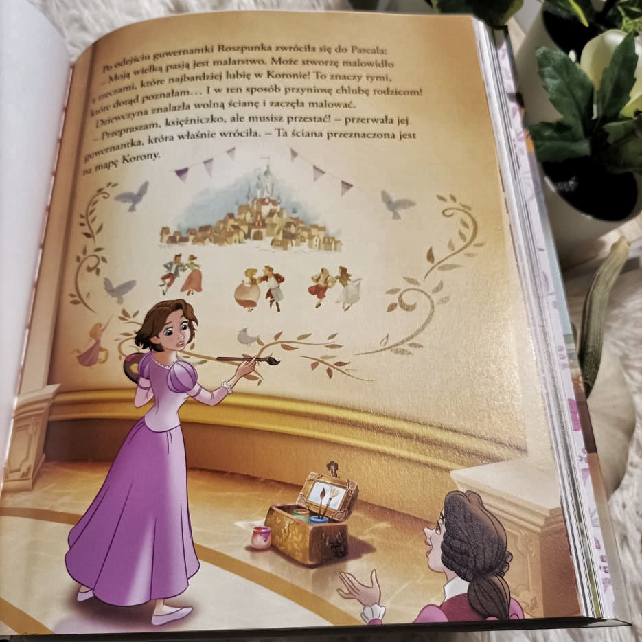 To przepięknie wydana książka w twardej oprawie. Na okładce widać księżniczki, co jest małą zapowiedzią tego, co znajduje się w środku. Dużym plusem tego wydania jest trwałość oraz to, że wygląda jak taka księga. No i oczywiście ilustracje wewnątrz. Disney przy ich tworzeniu wykonał kawał dobrej roboty. Jest kolorowo, dużo w nich ruchu oraz emocji.