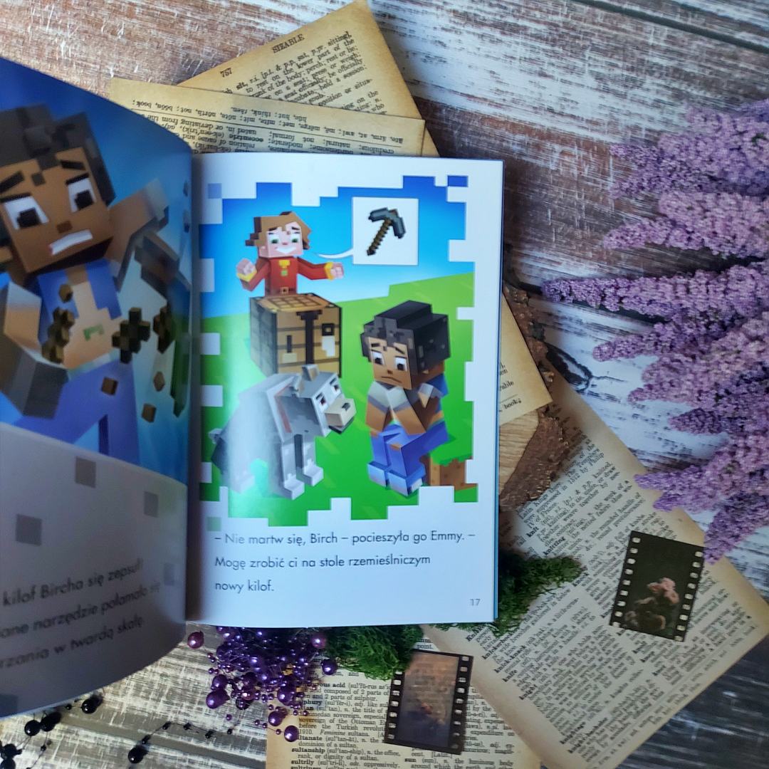Kilka słów o tym, co poza wiedzą i nowymi możliwościami znaleźć możemy w poszczególnych książeczkach. Moby w świecie podstawowym to swoisty przewodnik po tym, co zawiera fauna Minecraftowego świata. Emmy, Birch i Chaps przeczesują świat w poszukiwaniu zwierzęcego przyjaciela dla Emmy. Podróż ta wcale nie okaże się taka łatwa, wszak miłośnicy Minecrafta doskonale wiedzą, że moby mogą być zarówno przyjazne, jak i wrogo do nas nastawione. Jakie zwierzątko stanie się tym ukochanym dla naszej łowczyni przygód. Musicie przekonać się sami. Ilustracje umilą wam tę przygodę. Jest niezwykle barwnie i klimatycznie. Od pierwszych stron dacie się porwać światu pełnemu dziwnych stworzeń i sześciennych bloków.