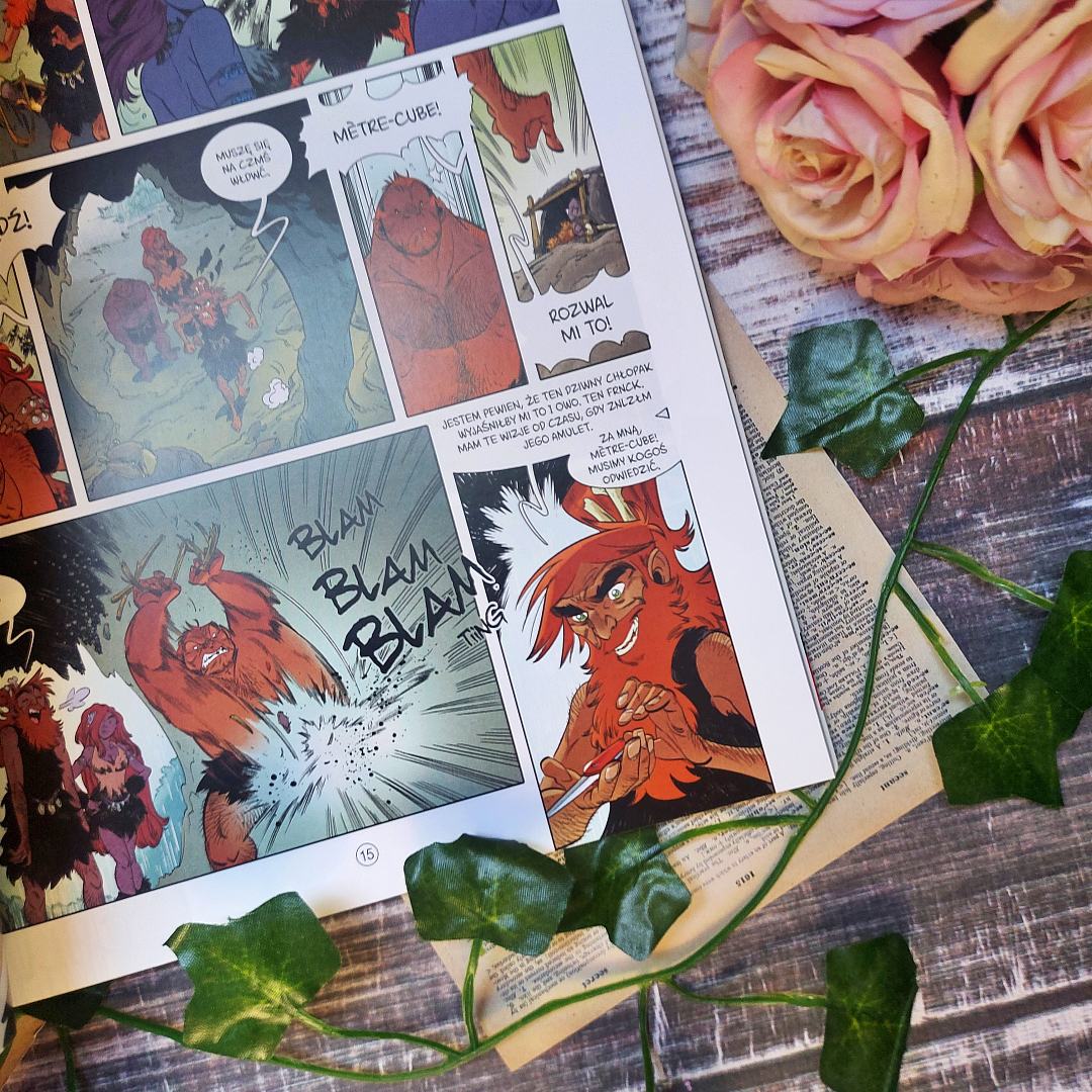 Tym razem dość mocno dominują ciemne kolory. Jest mroczniej i łatwo wyczuć można niebezpieczeństwo. Kreska wciąż wyraziście obrysowuje postaci i nadaje głębi tłu. To właśnie w ciemnościach kryje się strach, a ogień to nieokiełznana siła. Kolorystycznie całość wypada rewelacyjnie. Na każdej ilustracji czuć emocje, widać głębie i szerszą perspektywę. Chrzest Ognia można oglądać godzinami. Strona za stroną, wciąż zachwycamy się kreacją świata i ciekawym odwzorowaniem dawnych ludzi. Tekst stanowi niewielką, choć mocno humorystyczną cząstkę tej historii. Tu rządzi obraz i to jak wiele emocji zostało w nim przekazane. Chcemy więcej.