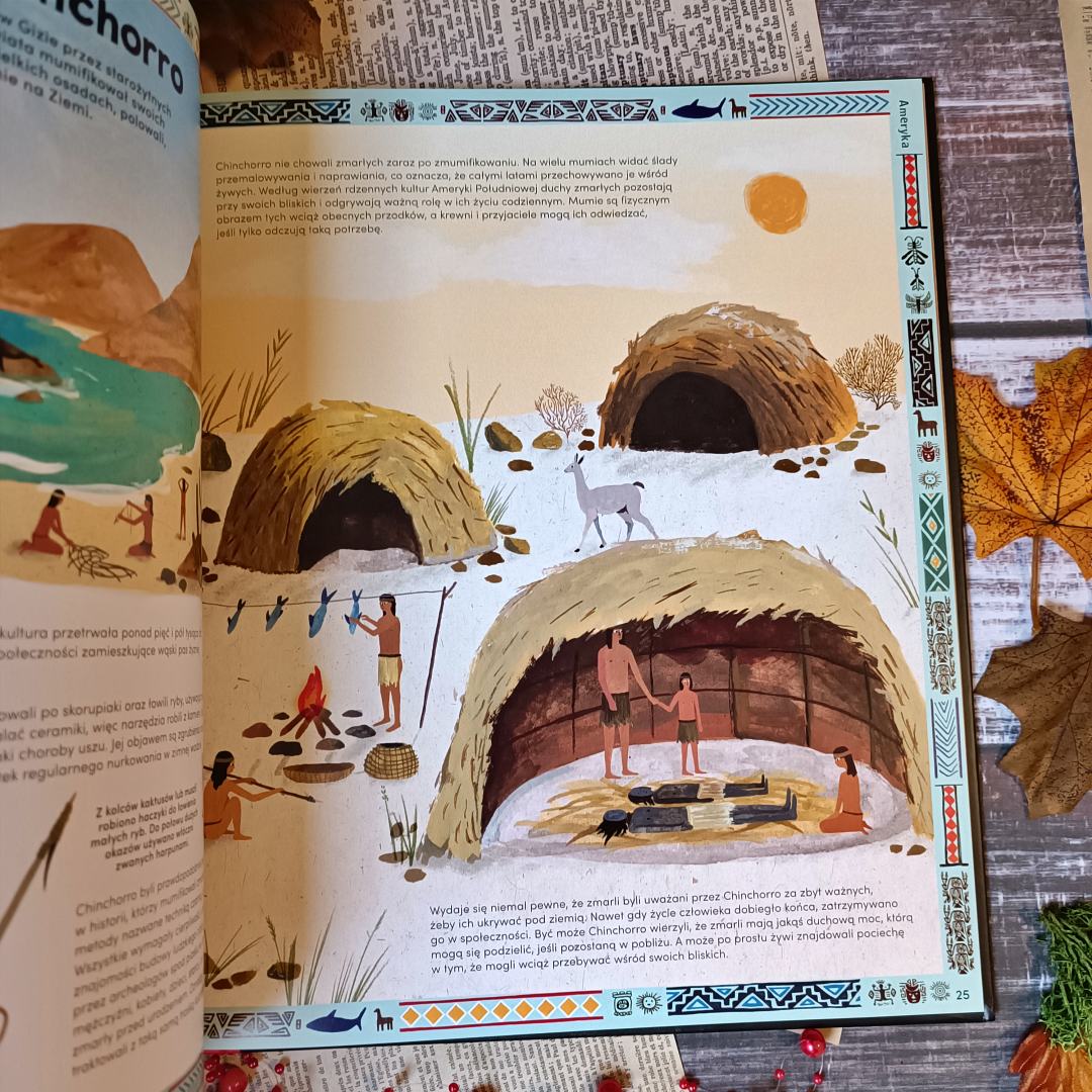 Każdy młody człowiek dochodzi w swej życiowej ścieżce do fascynacji śmiercią. Wtedy też na rodzica pada blady strach, gdyż wie, że od tego, jak podejdzie do tematu, wiele będzie zależeć. Choć to niezwykle delikatny i trudny temat, to również wciągający i podszyty tajemnicą. Sekrety zmarłych zaspokaja zarówno ciekawość, jak i stanowi mocną podstawę do oswajania dzieci z tematem śmierci. Cała masa ciekawostek przeplata się tu z mocą ilustracji, a wszystko stanowi sensowną i zamkniętą w pigułce wiedzę, którą łatwo przyswoić. Lekka i fascynująca dawka tajemnic, historii sięgających czasów Tutanchamona pomoże zrozumieć tradycje pochówków, wierzenia dotyczące formy dalszej drogi duszy zmarłego, a także przyczyny jego śmierci. Przemijanie połączono z rozwojem człowieka, jego wierzeń i sposobu życia. To fascynującą i bardzo sugestywna pozycja, która skierowana jest do dzieci 8+.