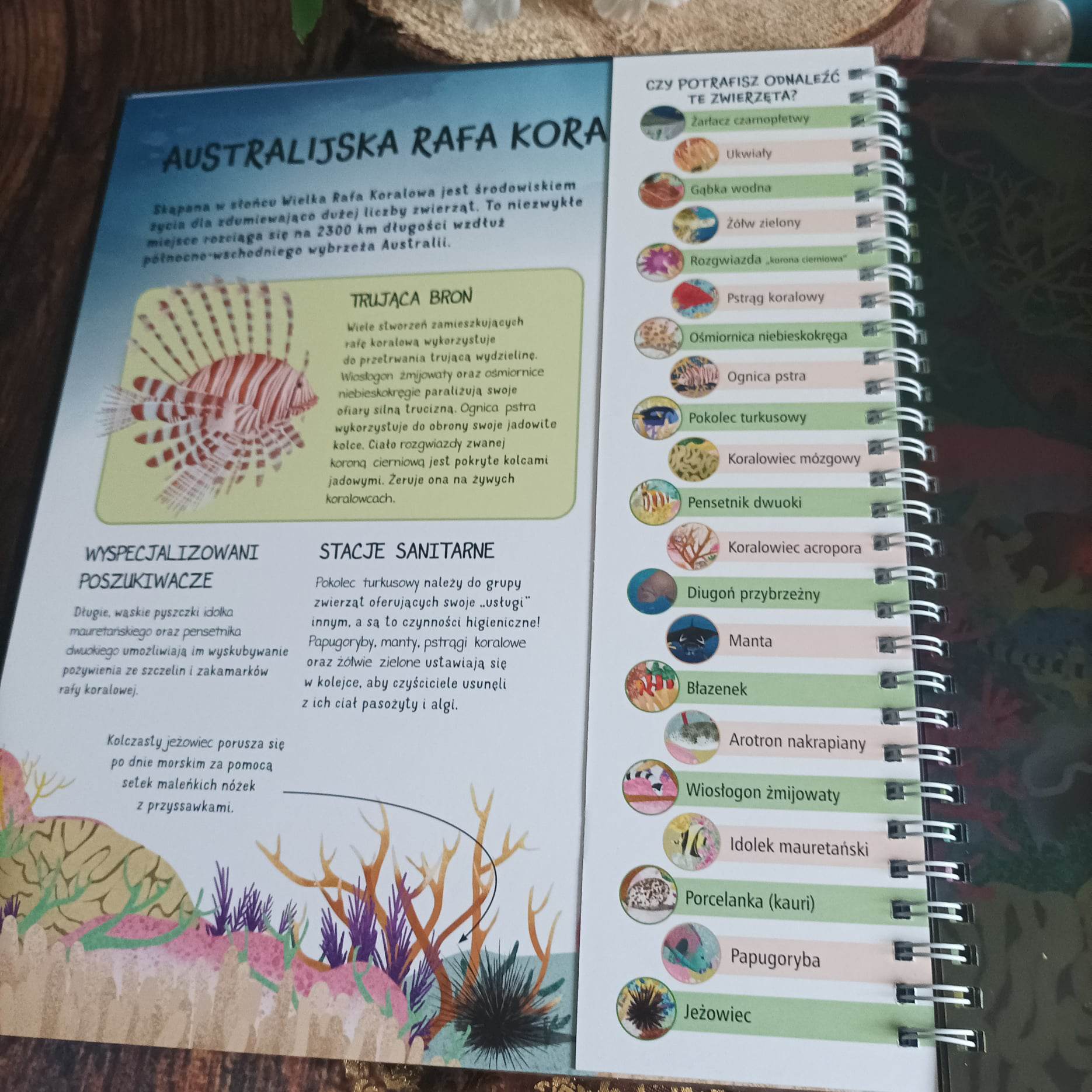 Muszę przyznać, że Tajemnice głębin oceanu stały się u nas jednymi z najczęściej czytanych książek w tym roku. To pozycja, która chyba nigdy się nie nudzi, niezależnie od tego ile się ma lat. Wiedza ukryta na rozkładówkach, przezroczyste strony, zabawa w poszukiwanie poszczególnych organizmów przyciągają jak magnes i nie dają o sobie na długo zapomnieć. Ten tytuł w moim odczuciu nie sprawdza się tylko jako warstwa edukacyjna, ale ćwiczy również koordynację oraz spostrzegawczość i zapewnia idealną rozrywkę dla całej rodziny.
