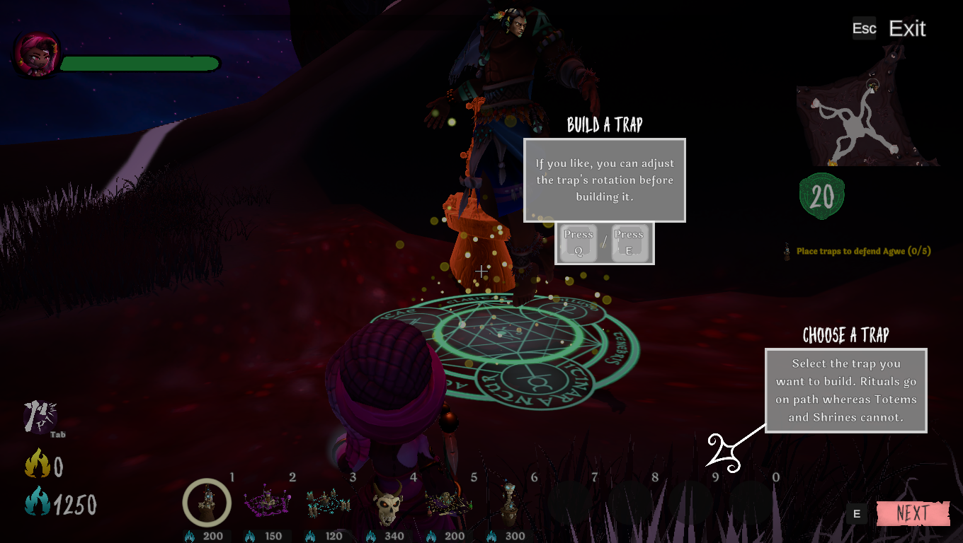Gdy po przemierzeniu mapy, dojdziemy do kapłana voodo, rozpoczyna się etap, w którym należy go ochronić. Zabijając demony, w trakcie gry zdobywa się dusze (ikona z niebieskim płomieniem), które następnie można wydać na różnorakie budowle i pułapki. Za pomocą klawisza Tab można się przełączać między trybem akcji a trybem budowy. W trybie budowy mamy różnorakie budowle, które mają na celu ochronę i pomoc w walce. Wybierając przycisk od 0 do 9, pojawia nam się do postawienia wybrana pułapka. Za pomocą klawiszy Q i E można je dowolnie obracać.