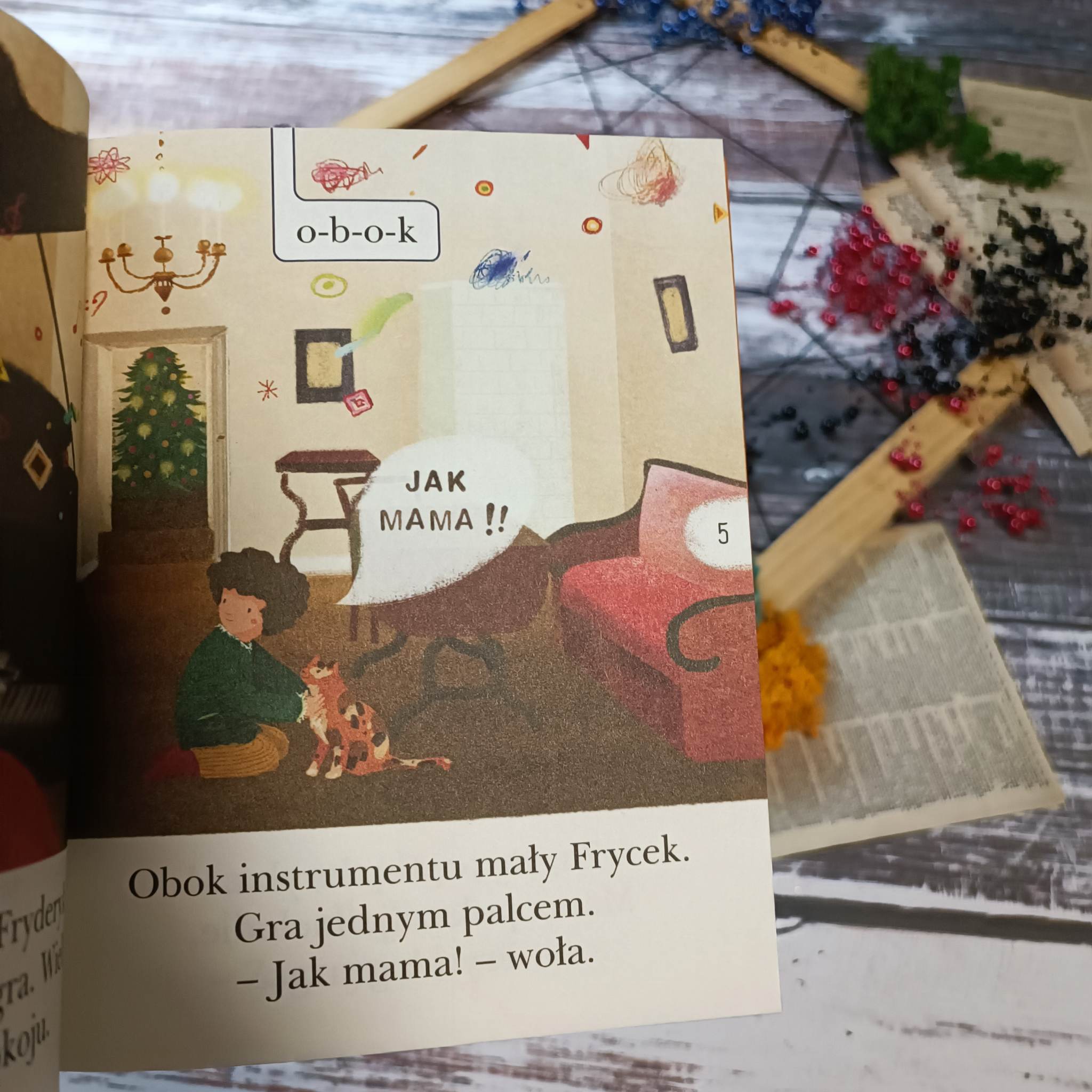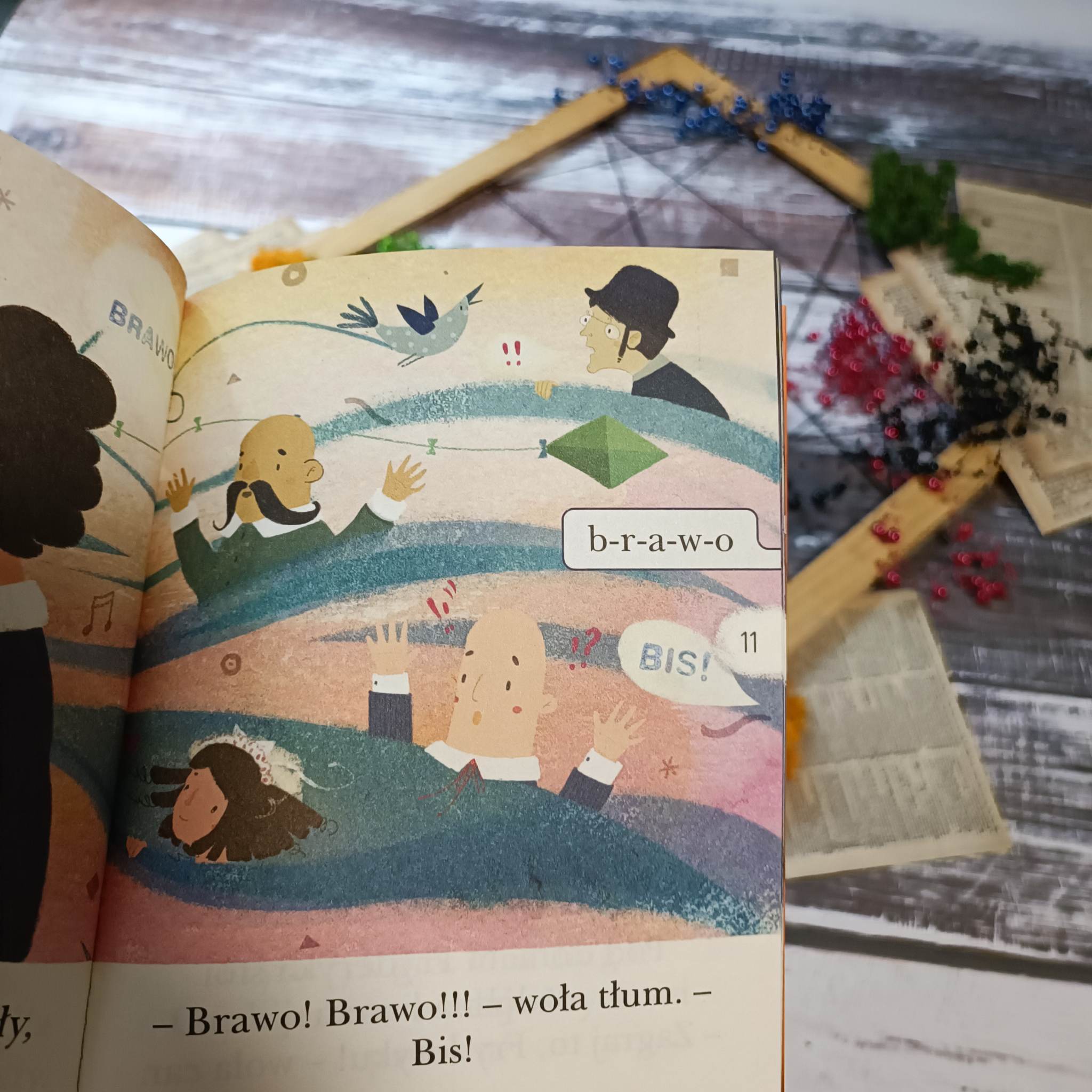 Anna Czerwińska-Rydel zadbała, by Fryderyk i jego historia zafascynowały małego odkrywce składającego napisane przez nią słowa. Co trudniejsze zostały rozdzielone na głoski, by łatwiej przyswoiło je nasze dziecko i równocześnie przypomniało sobie metodę głoskowania. Całość okalają ilustracje Aleksandry Krzanowskiej, której pióro zabiera nas w niesamowitą podróż po świecie muzyki i pasji. Jej kreska zaskakuje płynnością i dynamiką, a nuty niemalże wydają dźwięki, którym są przypisane.