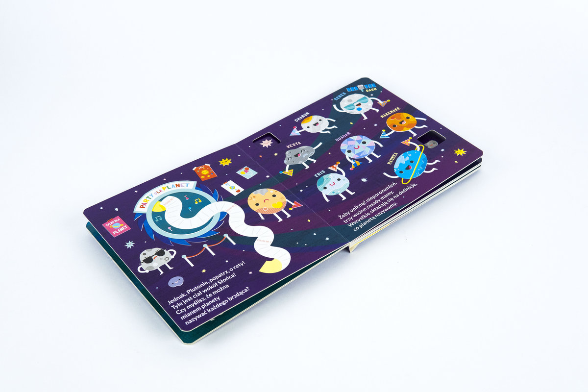 Układ słoneczny, jak i cały kosmos, od lat wiedzie prym wśród małych ciekawskich. Jest coś w tej nieograniczonej przestrzeni, co fascynuje dzieci. Widać to po popularności wszelakich programów naukowych skierowanych do najmłodszych czy chwytliwych piosenkach o kosmosie, które wpadają w ucho, a zarazem dostarczają wiele ciekawych informacji. „Kochamy Plutona” to piękna opowieść, idealna dla małych czytelników. Tekst jest melodyjny, wierszowany, dzięki czemu wpada w ucho i przyjemnie się go słucha. Autorzy w bardzo interesujący sposób, przemycili ogrom ciekawostek. Czego dowiedzą się dzieci z lektury tej książeczki? Poznają trzy zasady, które muszą spełniać ciała niebieskie, aby klasyfikować się do planet. Dodatkowo, maluchy dowiedzą się, dlaczego Pluton nie zalicza się do tego grona oraz jakie inne planetoidy można spotkać w przestrzeni kosmicznej, jak np. asteroidy. Na tym jednak nie kończy się atrakcyjność tej książeczki.