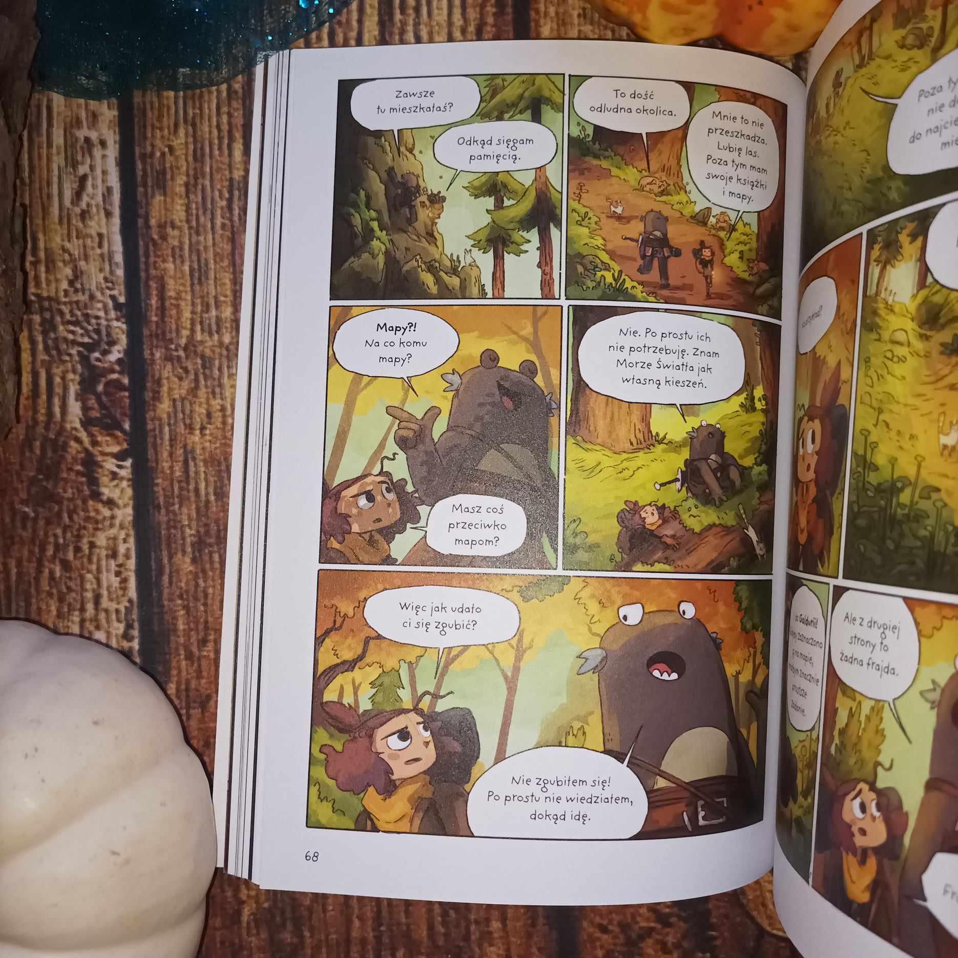 Jak na powieść graficzną przystało, to obraz jest tutaj najważniejszy i muszę przyznać, że już dawno nie było dane czytać nam tak pięknie wydanej historii. Już sama okładka daje przedsmak tego, co znajdziemy w środku. Od pierwszych stron przenosimy się do krainy nieco niepokojącej, ale równocześnie niezwykle fascynującej. Pełnej kolorów, przeróżnych barw, istot i życia. Każda ze stron zachwyca detalami i różnorodnością otoczenia. Tim Probert swoimi pracami ukazuje nie tylko postacie, ale i otoczenie, naturę, rzeczy, budynki. To naprawdę całościowo wygląda niesamowicie.