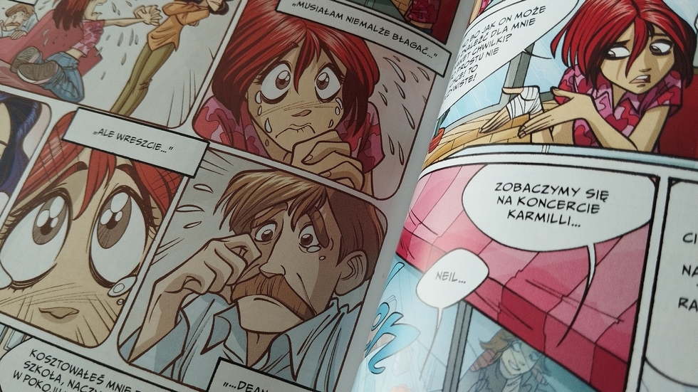Każdy nastolatek ma swoje problemy. I właśnie dlatego wszyscy tak pokochali WITCH. To nie są oderwane od świata bohaterki przenoszące się do innego świata, by rzucać się mu na pomoc. To zwyczajne dziewczyny, które muszą poświęcić weekend na naukę, choć akurat tutaj bym zamordowała swoje przyjaciółki, które gadaniem tak zdenerwowały nauczyciela, że ten zapowiedział wielki sprawdzian. Kochają się i odkochują, czegoś nie umieją, spierają się z rodzicami i błagają o nową komórkę. Ta scena wybitnie mi się podobała, nie tylko ze względu na fabułę, ale na pełne emocji rysunki. Will prawie się rozpłynęła z rozpaczy, dosłownie i rysunkowo, prawdziwy majstersztyk. Dzięki temu każdy – nawet chłopaki, choć wiem, że tu grono czytelników jest dużo mniejsze, znajdą tu coś dla siebie, będą mogli się z jakimś bohaterem utożsamiać. Dodatkowo można spojrzeć z boku na pewne zachowanie, przemyśleć je sobie i wyciągnąć wnioski, bo dziewczyny i ich otoczenie idealnie wpasowują się w dzisiejszy nastoletnio-szkolny świat, choć ich historia ma już kilka lat.