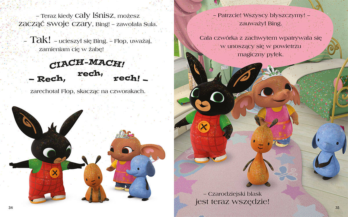 „Bing. Bajki 5 minut przed snem. Część 3” to zbiór krótkich, ale pełnych uroku opowieści, które idealnie nadają się na wieczorne czytanie przed snem. Każda z historii jest treściwa i idealna na zakończenie dnia. Książka zawiera nowe, wcześniej niepublikowane w Polsce historie, które z pewnością zachwycą małych czytelników. W każdej z nich Bing i jego przyjaciele przeżywają codzienne przygody, które są bliskie dzieciom i uczą je ważnych wartości, takich jak przyjaźń, współpraca i radzenie sobie z emocjami.
