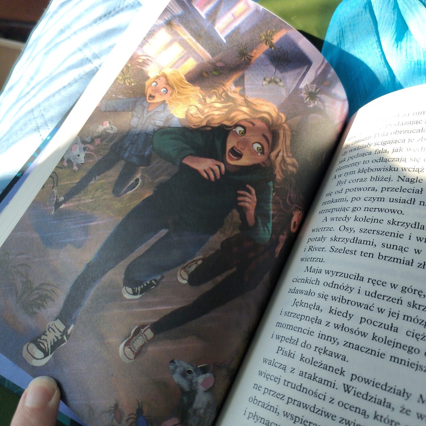 Wracając do Latarenek. Wspaniale czytało się o tym, jak ich przyjaźń jeszcze bardziej się wzmacnia. Lubię książki, gdzie bohaterowie dorastają w trakcie i tu mamy właśnie taki efekt. Zmienia się również relacja między Mają, Karoliną i Robertem, tu się w ogóle dużo dzieje i jest to jeden w wielu plusów tej książki. To jeden z moich ulubionych wątków, oprócz magii oczywiście.